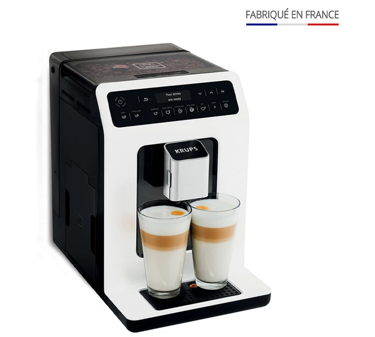 FabriquĂ©e en France, la Krups Evidence blanche est une Ă©lĂ©gante machine expresso broyeur qui sort son Ă©pingle du jeu dans le monde des cafetières expresso. Elle rĂ©alise 15 recettes diffĂ©rentes disponibles depuis les touches tactiles pour le plaisir de tous les gourmands ! Vous pouvez qui plus est rĂ©aliser deux boissons simultanĂ©ment pour partager un moment onctueux Ă deux. Garantie 2 ans – Offre-cadeau – Livraison gratuite.