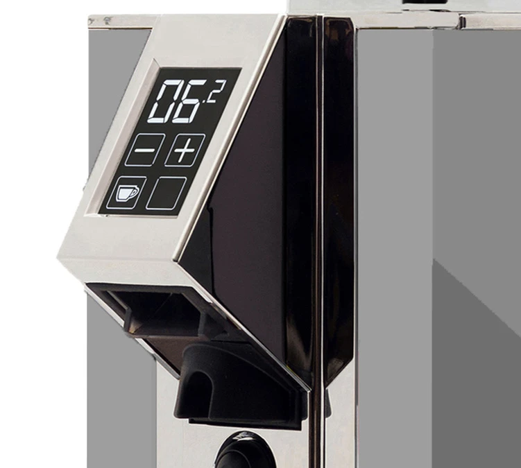 Ce moulin Eureka Mignon Perfetto permet de profiter d’un rĂ©glage d’une dose, de deux doses ou Ă la demande. L’Ă©cran digital en façade très intuitif permet de rĂ©gler très facilement vos doses avec une prĂ©cision de 0,01 seconde.