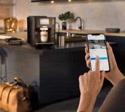 Cet expresso broyeur Siemens dispose d’un système connecté en Wifi. Vous pouvez ainsi la contrôler à distance depuis votre smartphone, tablette, montrée connectée ou encore assistant vocal.